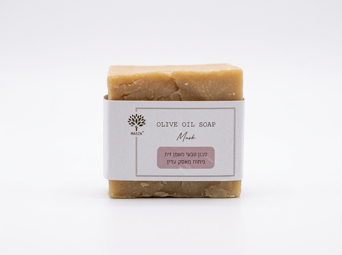 סבון שמן זית ואצת ספירולינה ירוקה בניחוח מאסק עדין